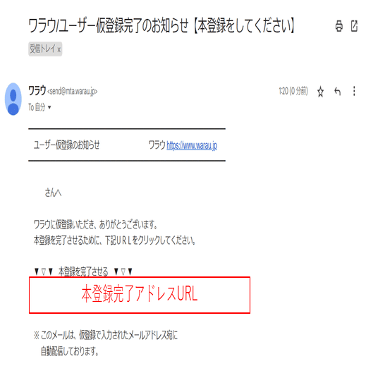 ⑤届いたメールの「本登録完了アドレスURL」をクリック