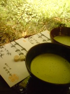 お干菓子は、竹をかたどった落雁です。