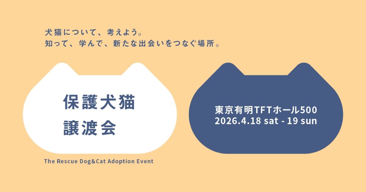 パナソニック保護⽝猫譲渡会4月18、19日東京で 譲渡会コーナーの予約を開始 | 「犬や猫ともっと幸せに」をコンセプトにしたWEBメディア「sippo」パナソニック株式会社は、2026年4月18日(土)、4月19日(日)に「パナソニック保護犬猫譲渡会2026」を東京有明TFTホール500で開催します。(協力:朝日新聞社sippo編集部) くらしを便利で豊かに、人や社会が幸せになるこ...sippo.asahi.com
