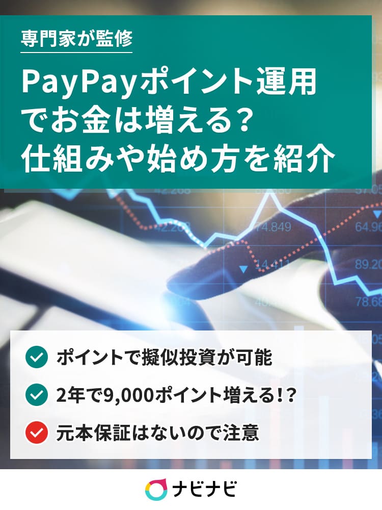 PayPayのポイント運用でお金は増える!?仕組み・始め方・コツをまとめて紹介 | イーデスPayPayのポイント(ボーナス)運用は、投資の疑似体験ができるサービスです。2年間10,000ポイント運用すると9,300ポイント分のお金を増やすことも可能です。ただし元本保証がない点に注意しましょう。この記事では始め方や特徴を解説します。www.a-tm.co.jp
