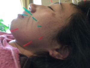 ほうれい線が気になるとともに、身体のだるさが抜けないという方に全身調整+美容鍼の施術をしました。
