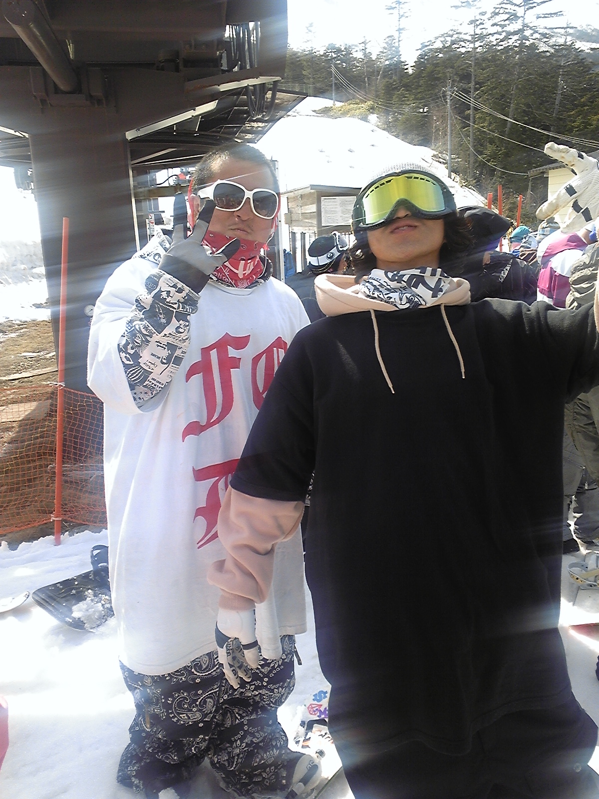 僕はシゲオに送ってもらったFUNBOXフード着て滑ってたら