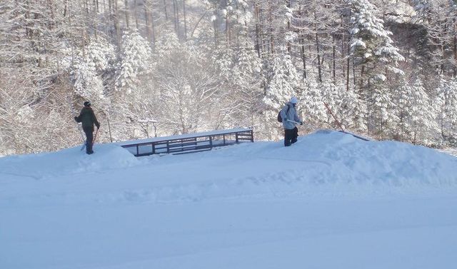 しかしすごい雪でパークが開いてるか心配してたら期待していたキッカーは案の定クローズ。。。とても飛びやすそうで安全設計なのになぁ。。他のアイテムも初心者に優しく十分楽しめるパークでした!