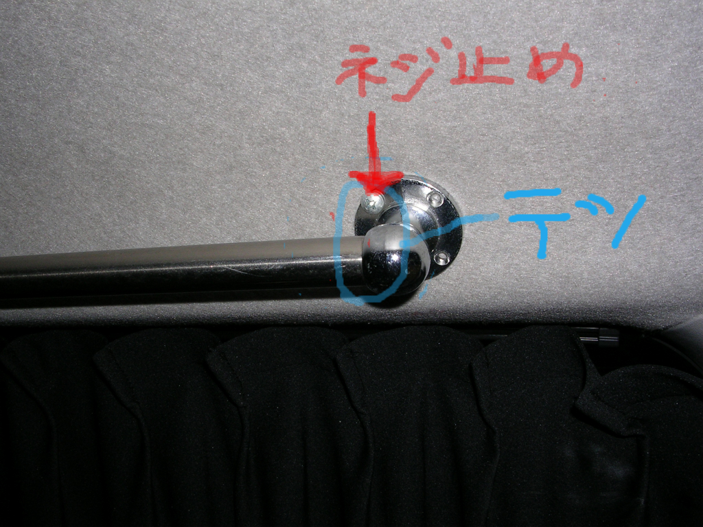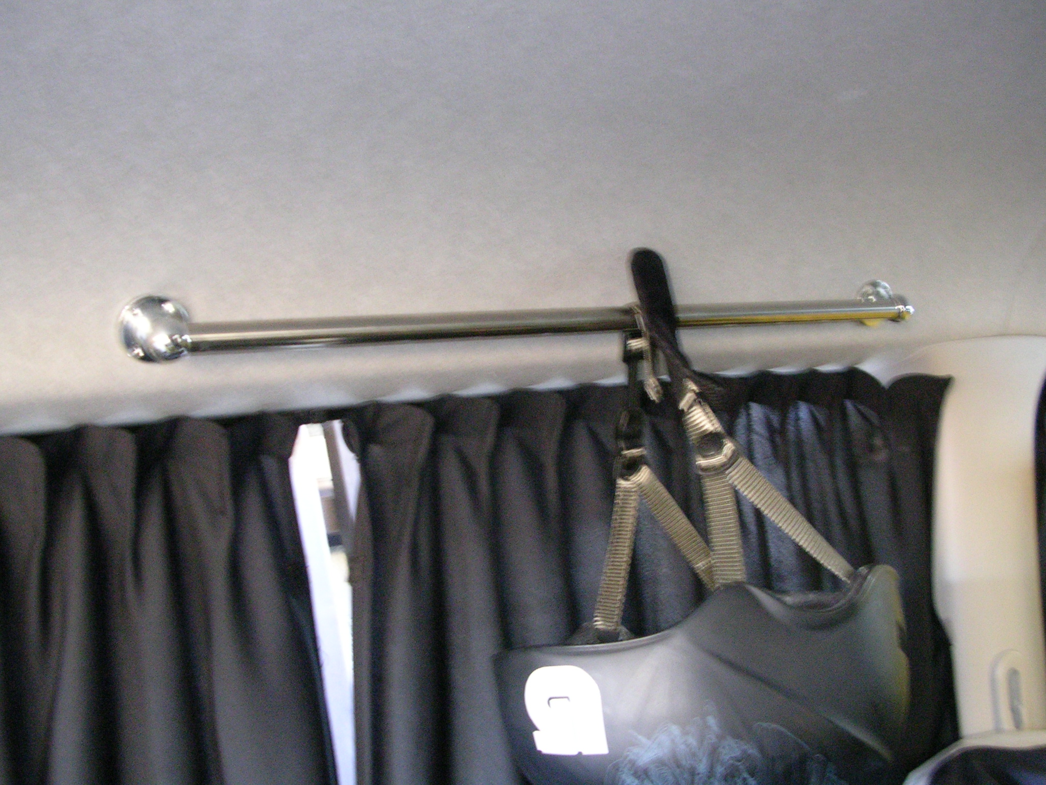 これは二年前、車の中に物掛け用にとレールをつけたのですが、これはハイエース用でも何でもなく、ホームセンターで資材を買ってきて、取り付けました。