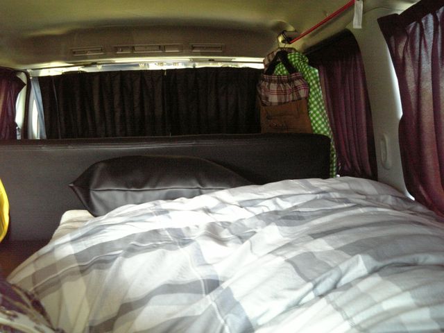 質問はレールの事です。これは二年前、車の中に物掛け用にとレールをつけたのですが、これはハイエース用でも何でもなく、ホームセンターで資材を買ってきて、取り付けました。