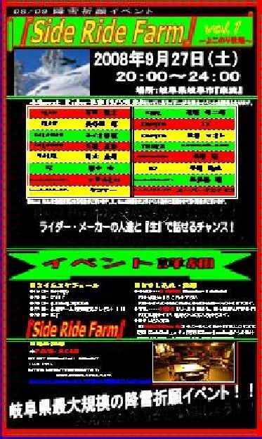 27日にスノーヴァ羽島でモニターライダー選考会があり、その夜にはSide Ride Farm~よこのり牧場~イベントがあり、そして28日にはアルペン岐阜店に多数のライダーが店頭に立って販売してくれます!!