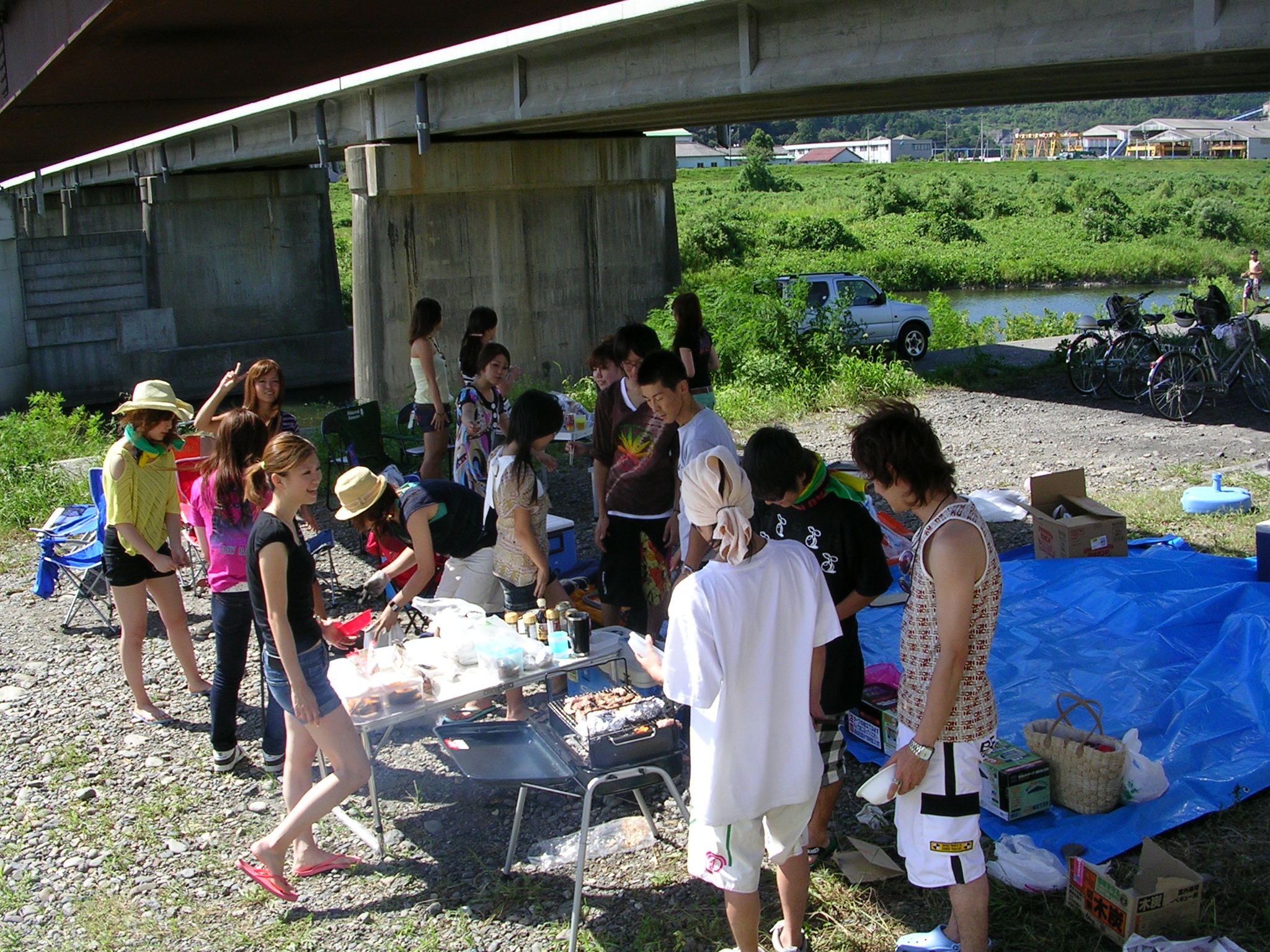 予定してたところから、川の水のあるところに変更してBBQスタートっす!ワタジュンも後から来てくれた♪参加メンバーは