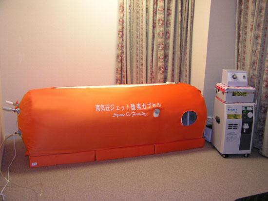 身体のあちこちを痛めてるので、高濃度酸素カプセルに入ってきました。怪我などで組織がダメージを受けているところに、高分圧の酸素が送られると、これ以上の酸素供給過剰を防ぐために、血流量を抑えようとして動脈が収縮する。しかし静脈には筋肉がないので収縮しない。そのため浸透圧の関係でむくみや痛みの原因となる体液が静脈に流れ込み、むくみも取れて炎症が治まる。骨折、肉離れ、捻挫などの回復が早くなり、スポーツなどへの早期復帰が期待できる。そのためプロスポーツ選手も数多く治療に通うという。
