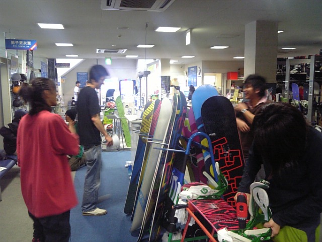 終わってから駐車場でジンくん達が来て、まったりしてた♪スノーボードに興味ねぇ!って言ってたジンくんギアカタログ見まくり♪相変わらずオモローです!