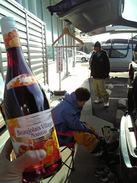 まゆちんと、夜中に着いたテっちゃんは、朝一で滑りに