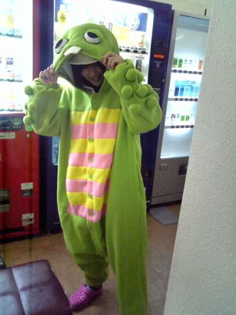 トイレに顔洗いに行くと、ガチャピンが歯磨きしてた。異様な光景を見た。