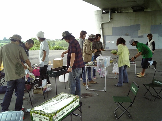 BBQ参加者が続々と羽島へ到着。ワタジュン、アキティ、すかたかくん、ヒロシくん夫妻、ちまくんなどなど。。他の人は初めましてでした