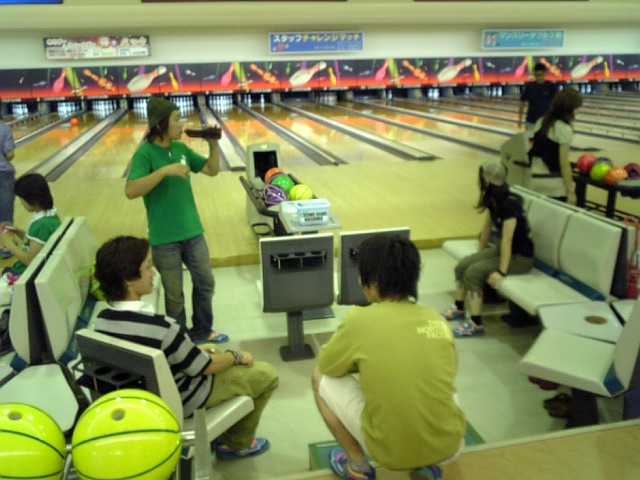 これからどうしようかなぁと思っていると、加藤ヒロシくん夫婦がやって来てボーリングに誘われました♪そこにアルペンライダーみのしょうが来て合流!
