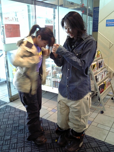 朝一組は、かおりん、チカちゃん、ザワにゃん、ミズミズと今日も西高東低率が高い♪とやくんも来て、みんなで楽しく滑った。