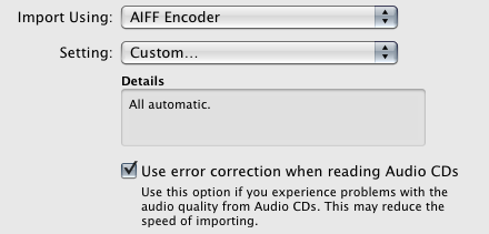 - "Mac Quad G5" internal DVD-Rom - iTunes 8 imports -> AIFF (1st time)