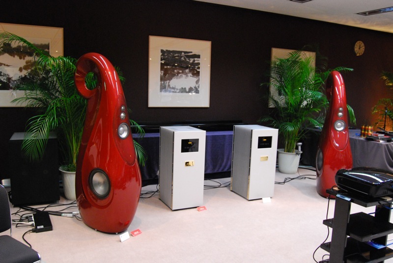What is the new trend in high end audio market? Network computer sources and giant size power amplifiers. The most stunning setup in 2008 TIAS is definitely the Vivid Audio - Giya loudspeaker driven by the Goldmund Telos 5000. The Goldmund Telos 5000 height is almost 1 meter in height, weighted 260Kg giant size, and producing 5000w RMS into 2 Ohms. (1250w 8Ohm RMS). There are many discussions in Vivid Audio Giya speaker. The interesting outlook and sharp red colour gets draw huge attention. How about the sound performances? Excellent to my ears! i wish to have a more serious listening in the future.