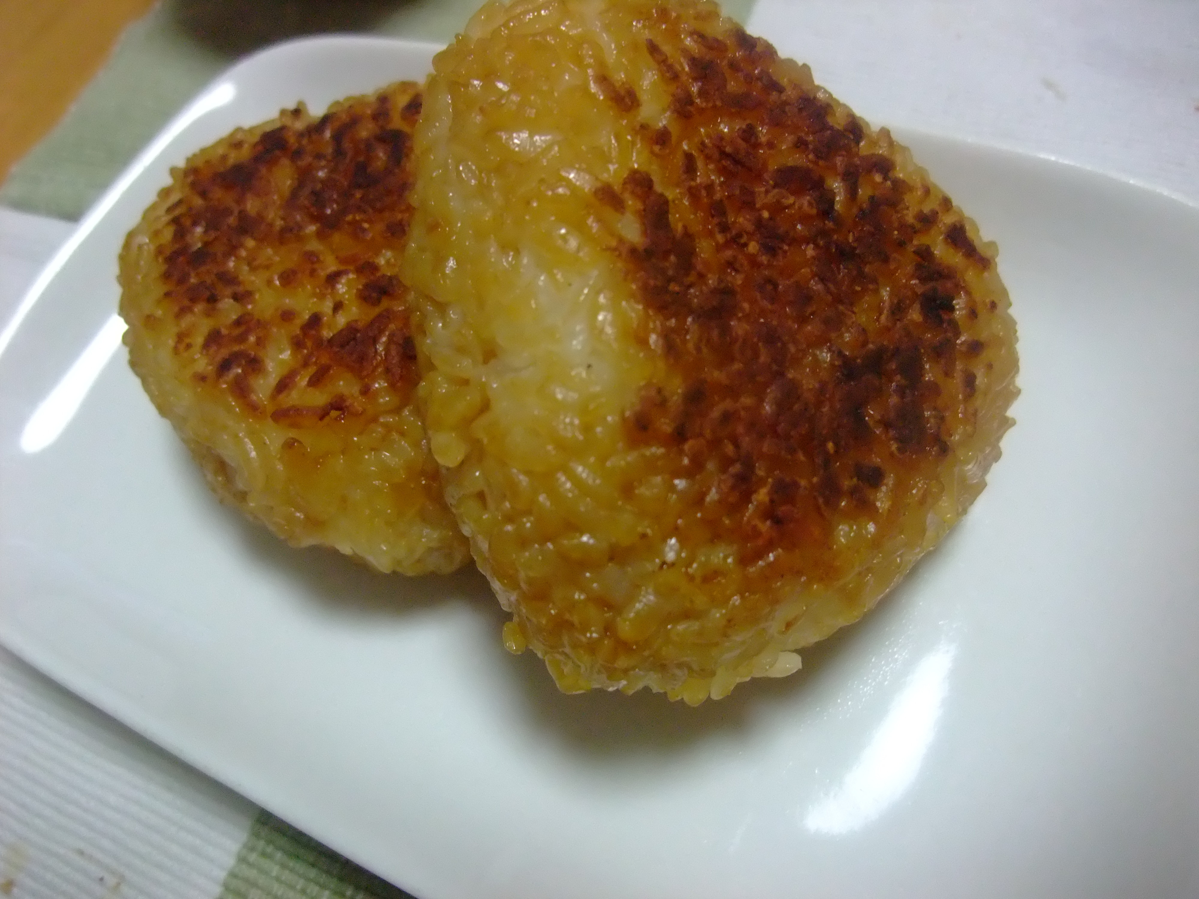 我が家の焼きおにぎり 焼き鳥に行けば必ず注文する焼きおにぎりも作ってみました フライパンで簡単に作れる焼きおにぎりです レシピは・・・ 暖かいご飯に白だしかけて(適量)おにぎりを作ります。 醤油を全体にハケで塗って、フライパンでこんがり焼くだけ。 (醤油はたっぷりのほうがおいしいです) メタボ夫も娘もたくさん食べてくれました~v( ̄∇ ̄)v 本当に簡単でおいしいのでお試しあれ~