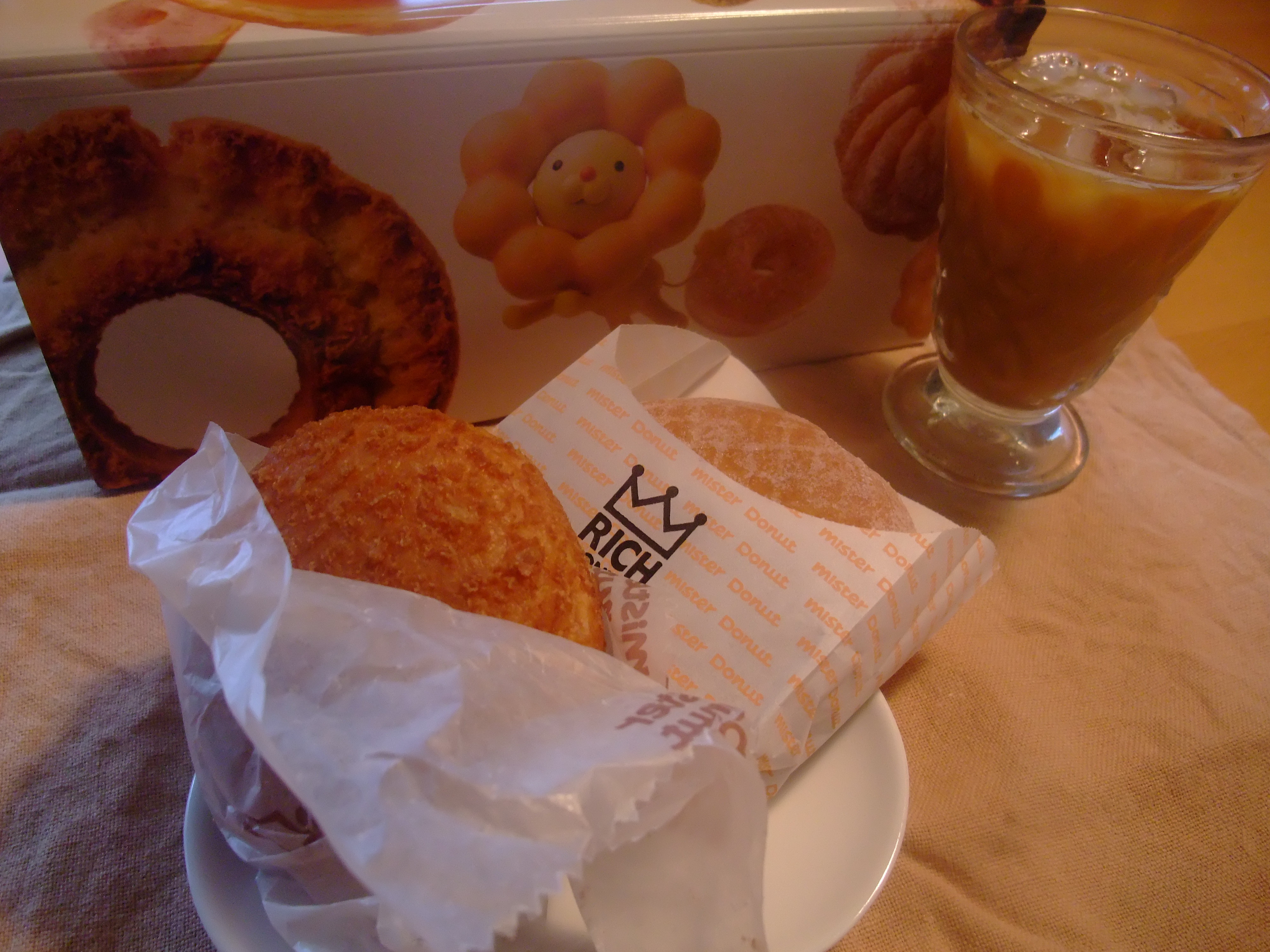 久しぶりのミスド(*゚▽゚*)今日はヤフオクが無料出品キャンペーンしてたのでいっぱい出品しました写真を撮ったりなど面倒ですが、私の大事な収入源なので頑張りましたでも疲れるんですよねぇ・・・・( ̄▽ ̄;)なので甘いものを補給しようと久しぶりにミスドへ行ってきましたこちらも100円キャンペーン中で混んでました娘は甘~いドーナツよりもカレードーナツが好きみたいです私のカレードーナツも半分奪われました軽い痛風発作中のメタボ夫にも連絡しましたが「いらない」と言われちゃいました今日はメタボ夫が晩ごはんがいらないのでラクチンです痛風発作は悪化してないかしら・・・・ちょっと心配です・・・。