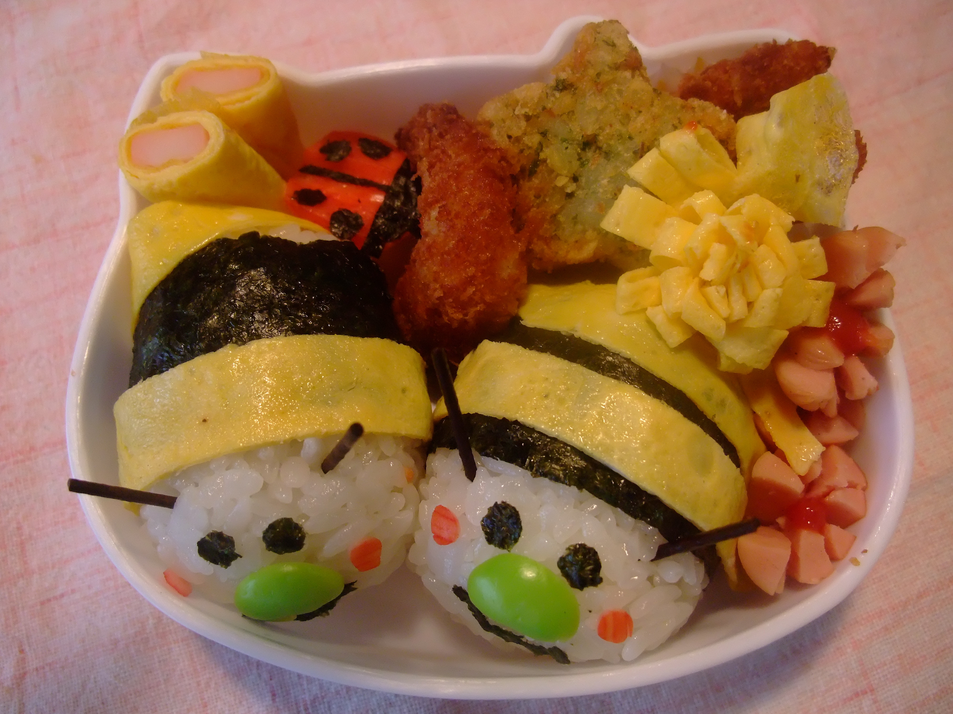 今日のお弁当はミツバチさんだよ(⌒-⌒) 今日は週一回のお弁当日(・∀・) アンパンマンシリーズはしんどいのでミツバチさんにしてみました ミツバチさんもテントウ虫さんもカワイイので、作ってて楽しかったです 娘の反応は・・・・ 「わぁ~いハチさんだぁテントウ虫さんだぁ」 と喜んでる様子(* ̄∇ ̄*) この笑顔を見ると、また頑張って作ろうと思っちゃいますね 来週は何を作ろうかな