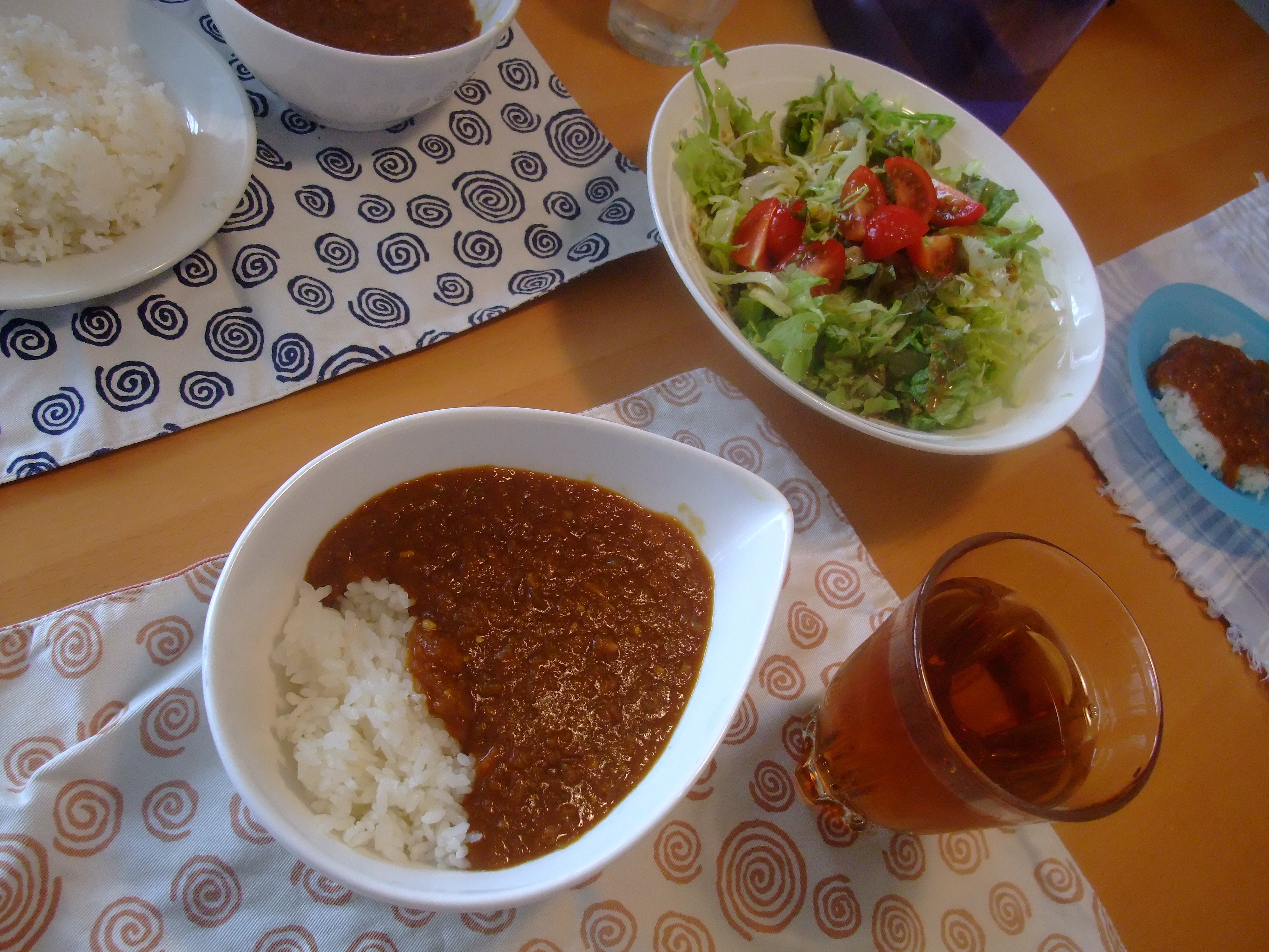 朝からカレー(。・ω・) 今日の朝ごはんはカレーライス 我が家では、夜よりも朝に食べるほうが多いです よそのお宅では朝からカレーは食べないと聞いてビックリ メタボ家は、朝から鍋したこともありますヨ 朝ごはんは、いっぱい食べます なので、朝バナナダイエットをしたら2ヶ月で3kg痩せたことありました でも辛かったです・・・・(´;ω;`) 娘も熱あるのにカレー食べてました
