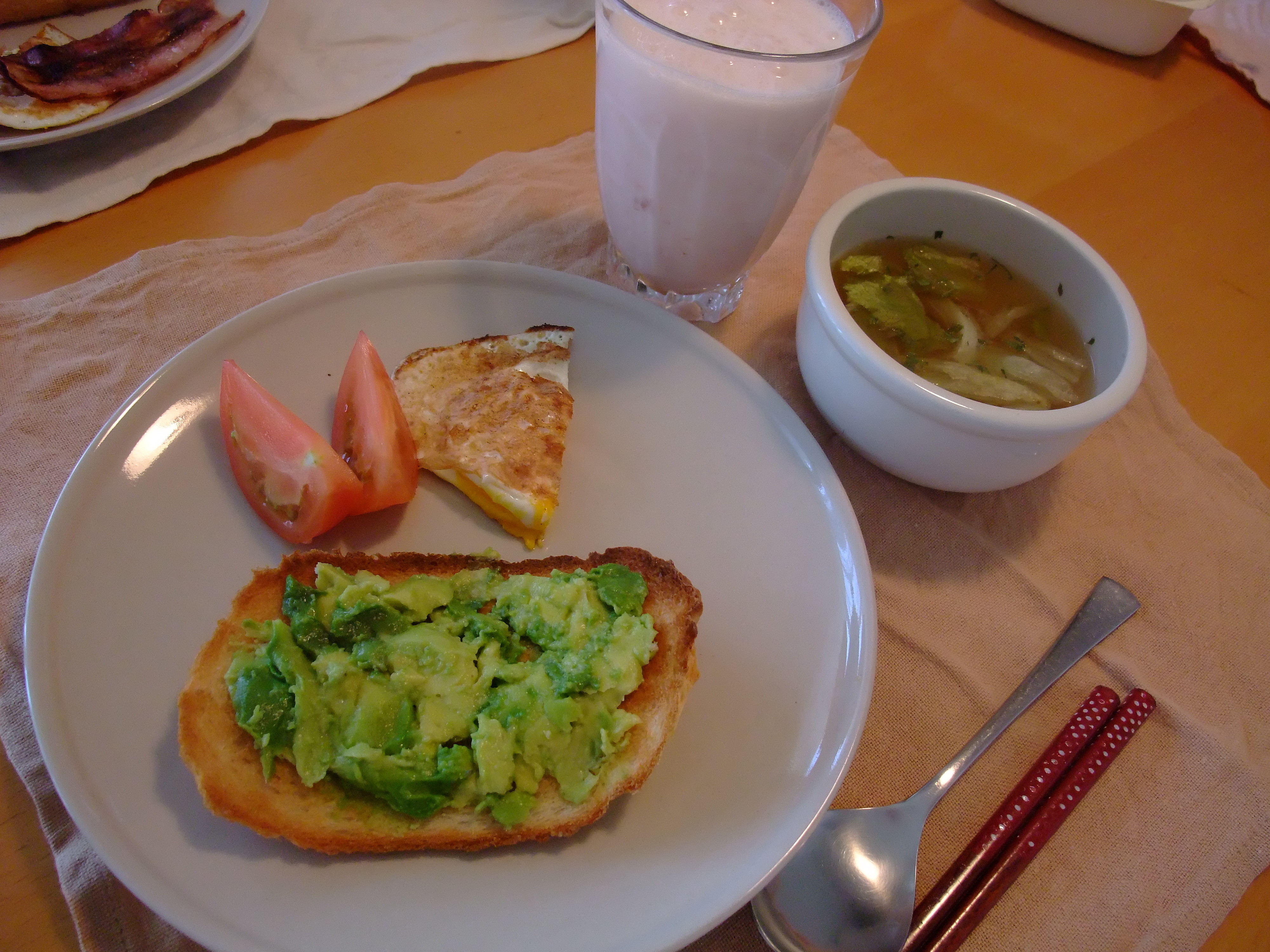 レコーディング・ダイエッット4日目朝食は美容重視なメニュー アボガドトースト 1枚 目玉焼き 半分 トマト レタススープ グレープフルーツ&ヨーグルトのスムージー 合計 360キロカロリー 昼食は食べるタイミングがなくて娘ちゃんおうどんの残りの汁のみ・・・ 小腹が減ってお魚ウインナー1本半 アイスオーレ 2杯 合計200キロカロリーぐらい??? 夜はメタボ夫の実家にて焼肉&ビール&缶チューハイ&お菓子 測定不能・・・・ たまにはこんな日もあります