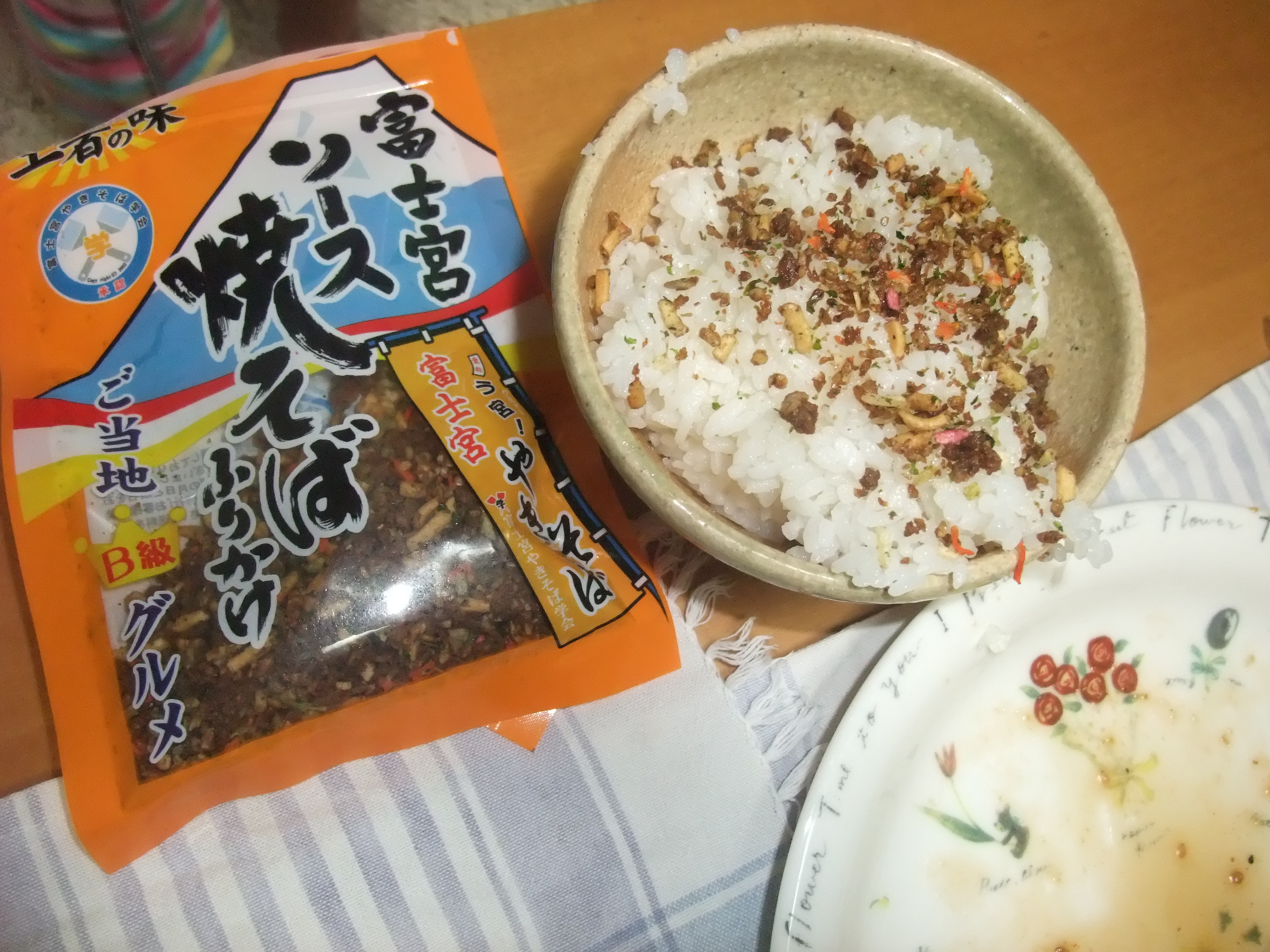 富士宮ソース焼きそばふりかけ本日3回目のパンが焼きあがりました焼酎のお湯割りを飲みながら晩ごはんをアテにしてたメタボ夫が「そのパンたべてもいい?」「明日の朝食用のパンですけど・・・」「じゃあふりかけご飯食べたい」ダイエット宣言したばかりなのに炭水化物とってもいいの~で、こないだ近所のドラッグストアで見つけたふりかけを味見してみることに・・・はっきり言ってマズイというか微妙です(; ̄Д ̄)富士宮焼きそばは大好きで、お取り寄せしてまで食べてますがこのふりかけは期待はずれでした叶屋の焼きそばはおいしいのに残念でした