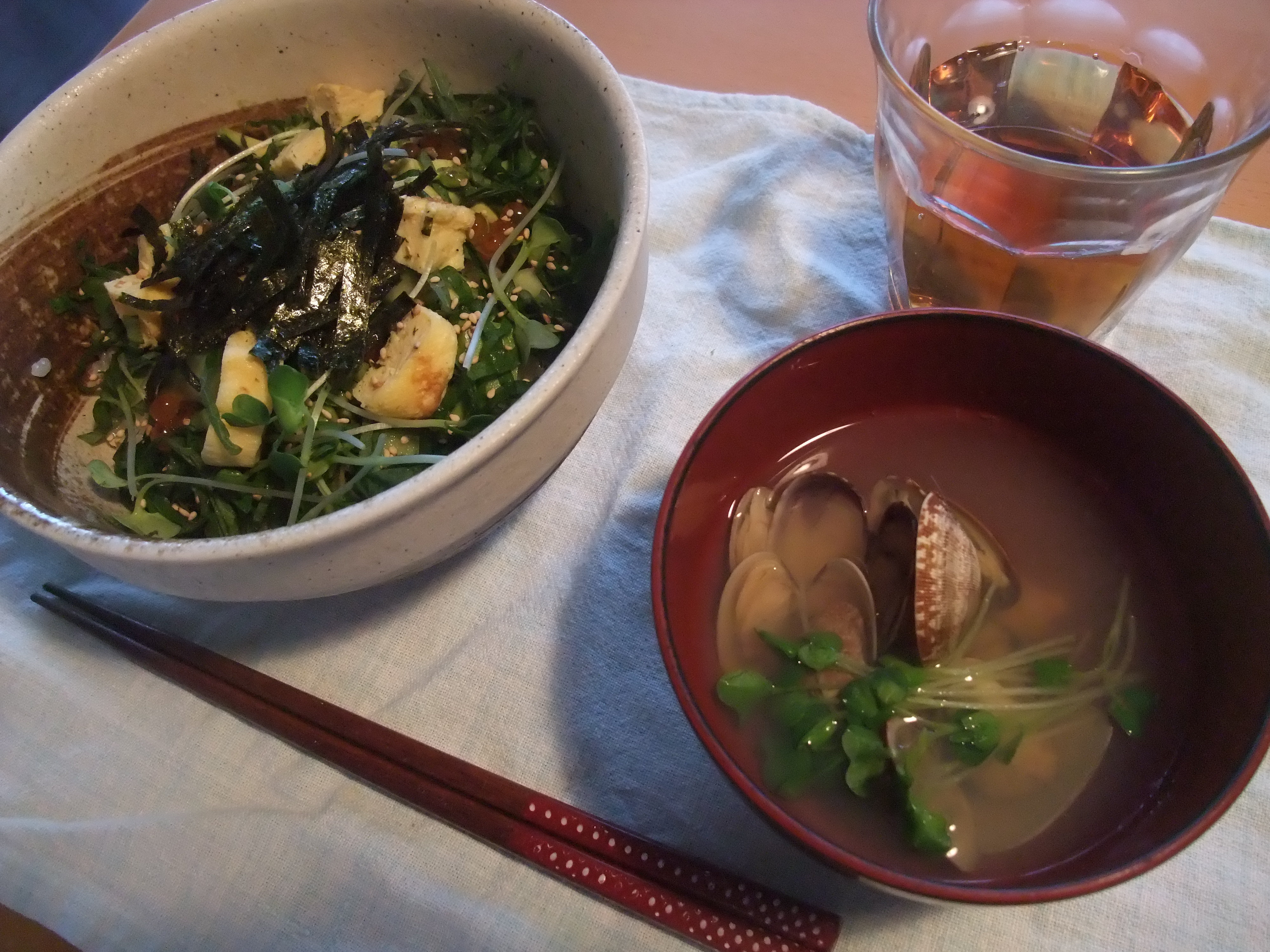 アボガドといくらのちらし寿司とアサリのお吸い物です( ̄∇ ̄)