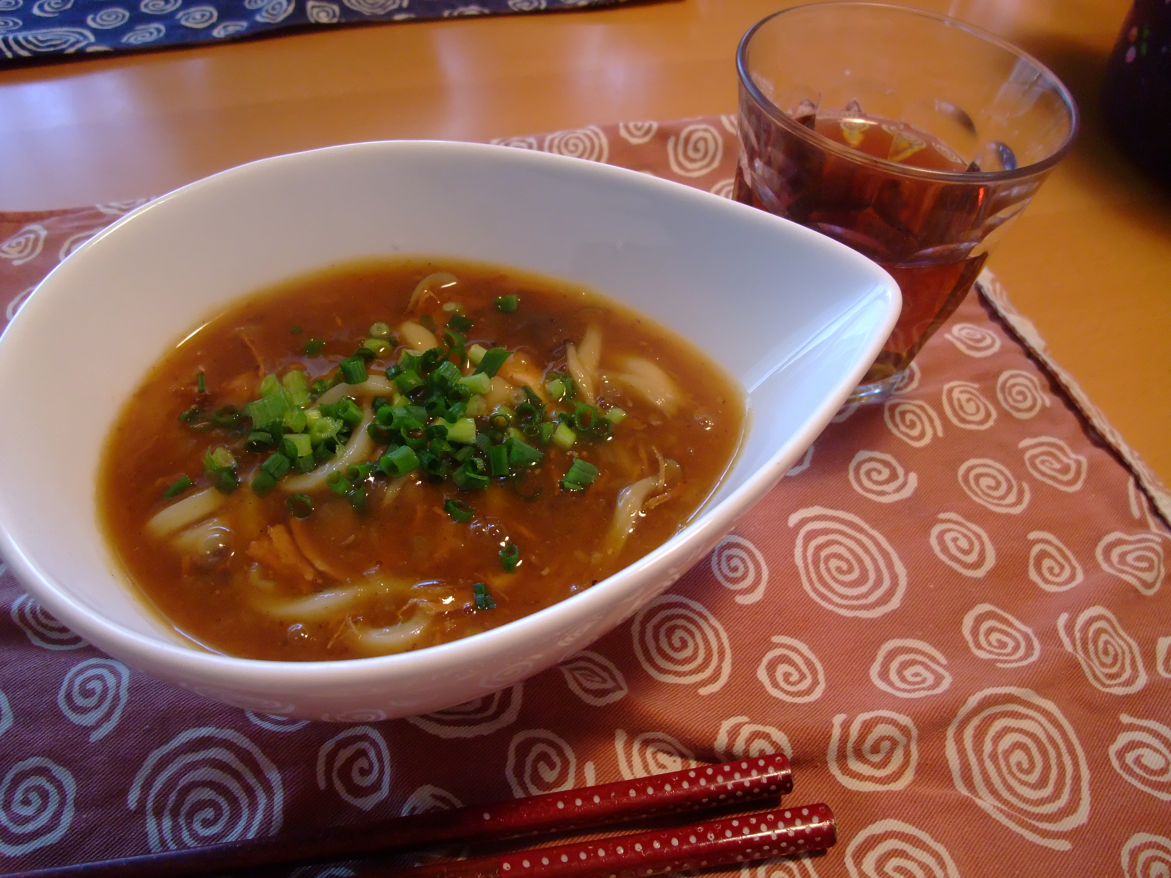 カレーうどん(娘ちゃんと半分個しました) 196.7昨日のカレーの残りに白だし・水・しめじ・鶏胸肉(皮無し)を入れただけですが美味でした~