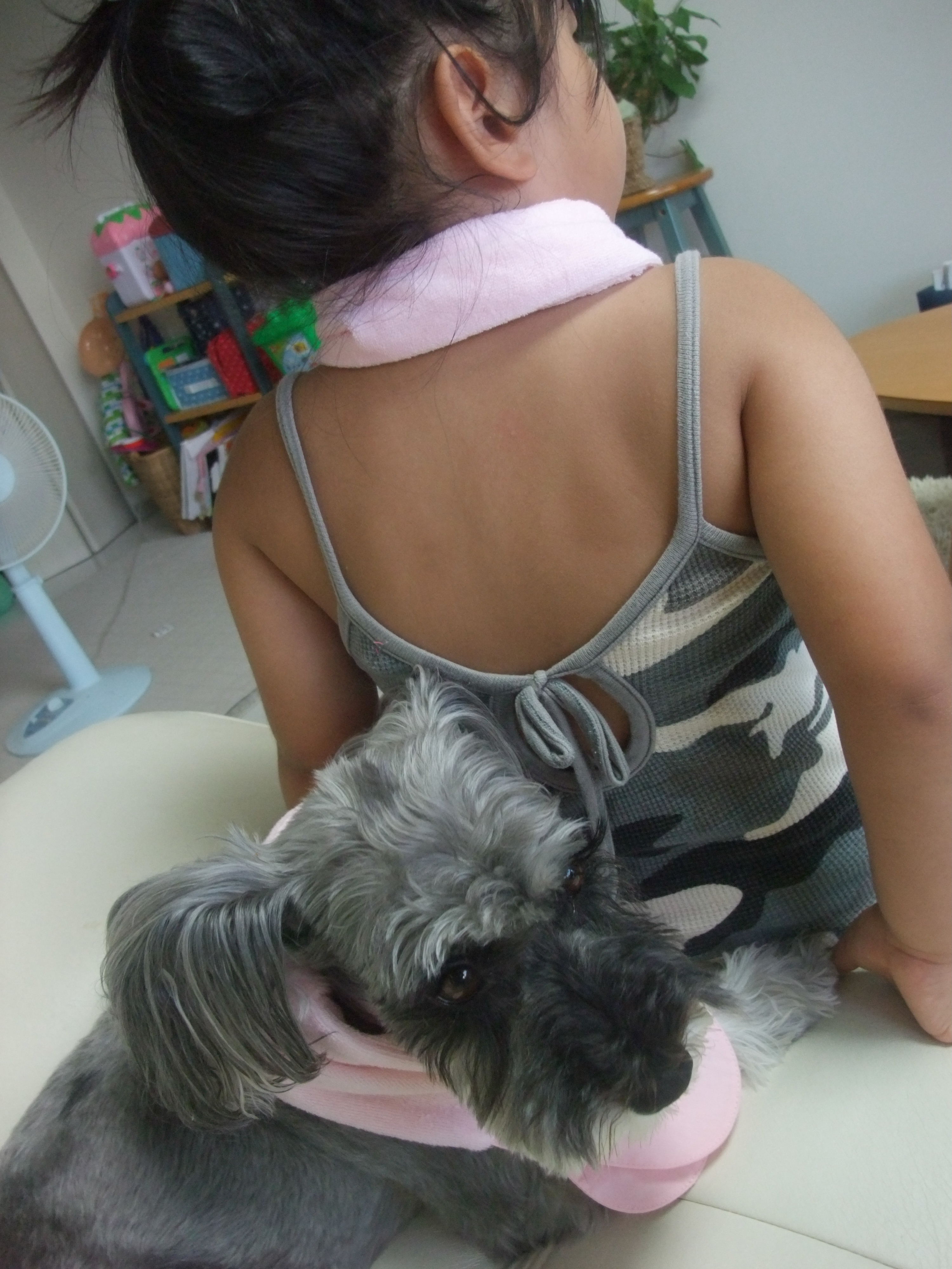 エアコンで部屋の温度は快適なはずなのに、娘ちゃんは汗かいてます![]()