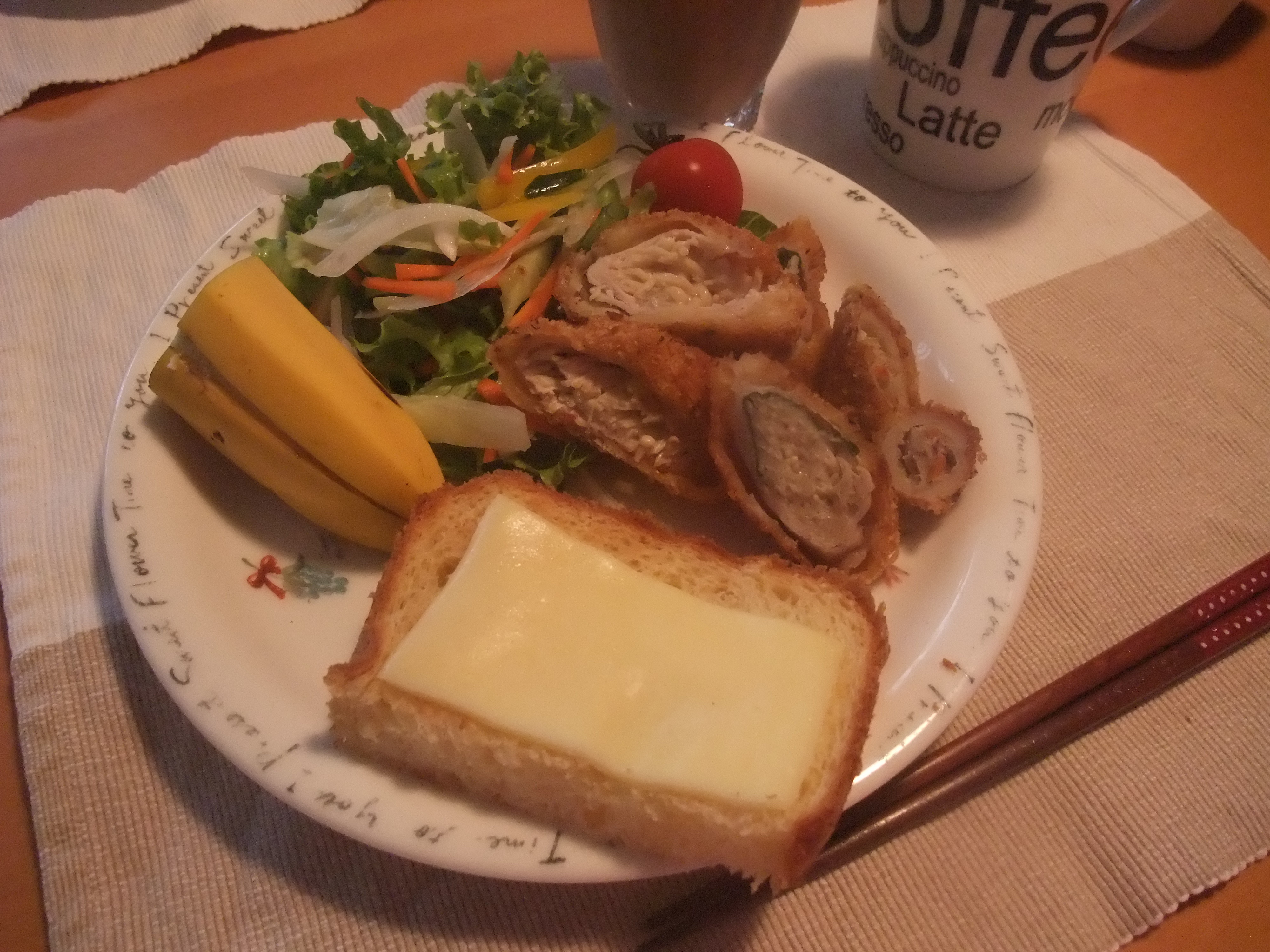 本日の朝ごはん♪ 今日の朝ごはんのパンはちょっと失敗しちゃいました 牛乳の量が多かったみたいで頭でっかちパンになっちゃいました なので横にスライスしていただきました(・∀・) お味は・・・・ 少しパサついた感じ(スカスカ)がします 上手に焼けたらレシピを載せようかと思いましたが残念・・・。