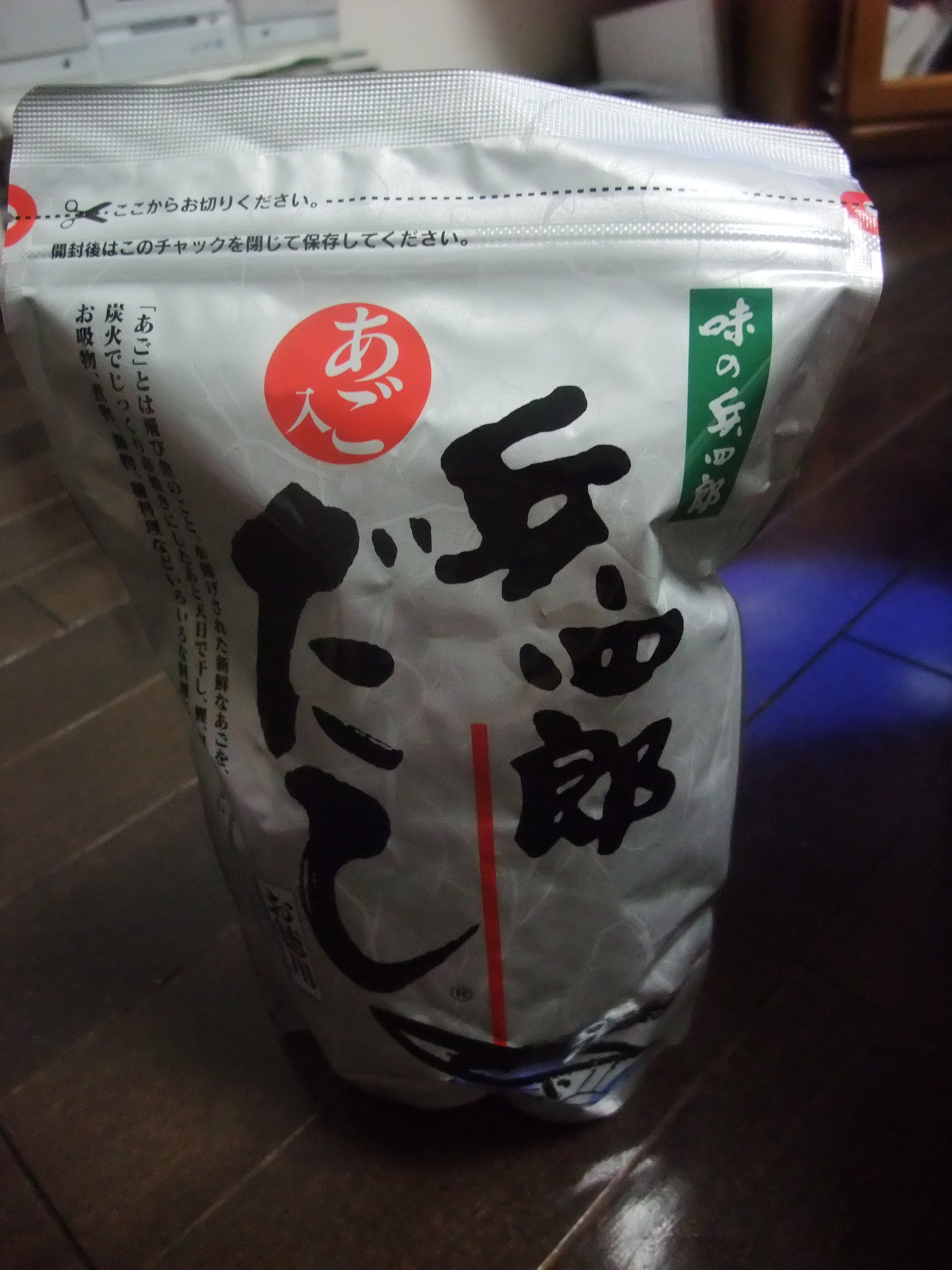 兵四郎だしあご入り 兵四郎だしが我が家のおだしですかつおや昆布で上手にできればいいのですが、私には無理なのでこちらを使ってます(・∀・)メタボ夫が二日酔いの為、晩ごはんはうどんに決定このおだしで作りますよ私は阪急百貨店で購入してますが、お取り寄せもできます。味の兵四郎 0120-849-888http://www.ajino-hyoshiro.co.jp/ おいしいのでお試しあれ~