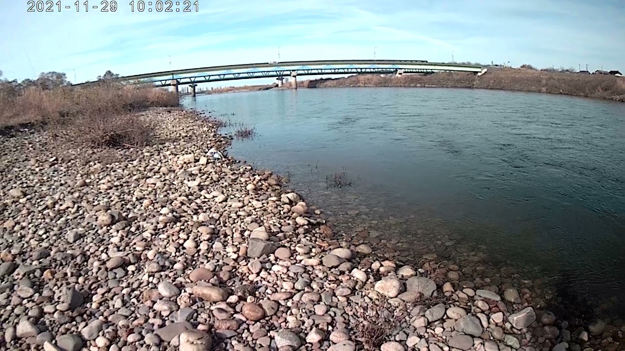 この後お昼過ぎまでアタリは無くこの界隈に釘着け爆投です。 何故かというと足元の岸際でメスサケがオスサケにしつこく追われるシーンを 10回以上見てしまったからです。 水深は 1.5m前後で笹濁りの為に産卵床は目視出来ず。