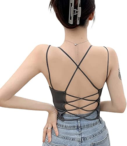 [優億] キャミソール カップ付き インナーブラ オープンバック 背中あきトップス ストラップ レディース ノンワイヤー 見せブラ トップス ストレスフリー (バッククロス ブラック)Amazon(アマゾン)