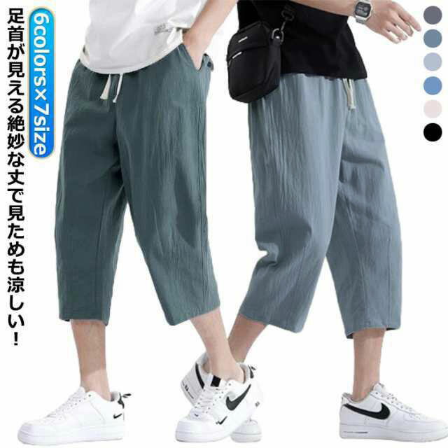 サルエルパンツ メンズ 夏 麻 冷感 黒 大きいサイズ リネンパンツ 麻パンツ 麻 ゆったり コットンリネン ウエストゴム 七分丈パンツ 涼しい メンズ クロップドパンツ 長ズボン 送料無料 紐付き 春夏 ゆったり 薄手 無地 カジュアル おしゃれ 綿麻楽天市場