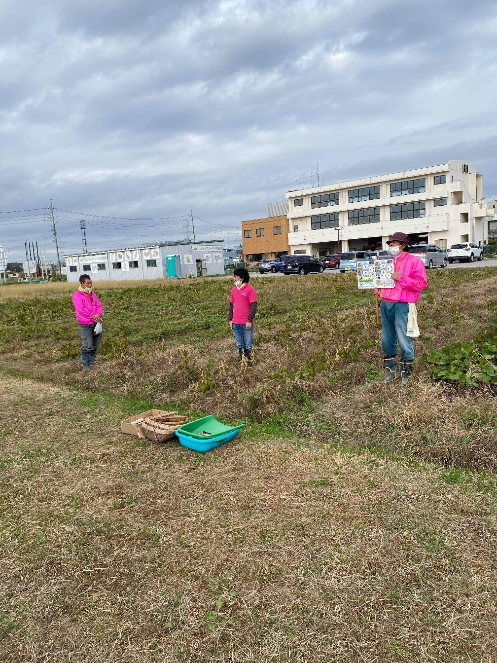 日進アグリスクール6次産業体験コースの大豆収穫も