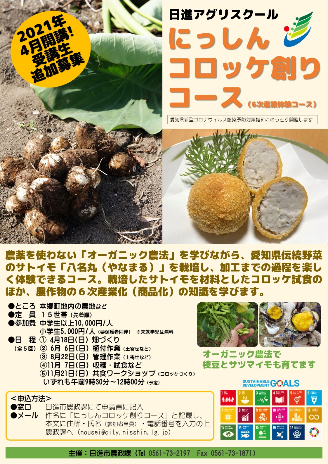 畑の準備今年もいよいよ始まる 日進アグリスクール。 今年は、さといもコロッケ創りコース(6次産業体験コース)と 米づくり体験コースを担当させて頂きます。 よろしくお願いいたします。 さてさて、 さといもコロッケ創りコースの舞台となる 本郷畑。nisshinesd-sougou-kyouiku2021.jimdofree.com