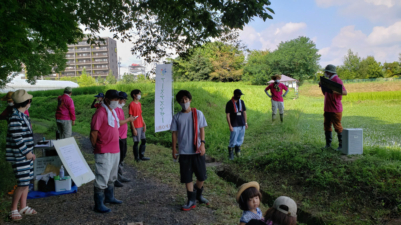 自然・生き物観察昨日は、日進アグリスクールの米づくり体験コースの2回目「自然・生き物観察」でした。この姿でお出迎え! どんな様子だったかはこちらから↓ 生き物調査隊!8月1日(日)は、米づくり体験コースの2回目 「自然・生き物観察」を開催しました。 約60名の皆様にご参加頂きました。 まずは、いつものようにご挨拶と、日進体操からスタートです。 にっしん~、にっしん~♪nisshinesd-sougou-kyouiku2021.jimdofree.com