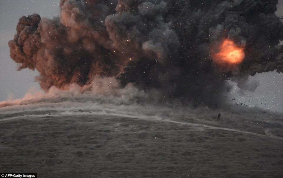 爆炎の近くにはISIS兵とみられる人間が立っていた様子も記録されています。