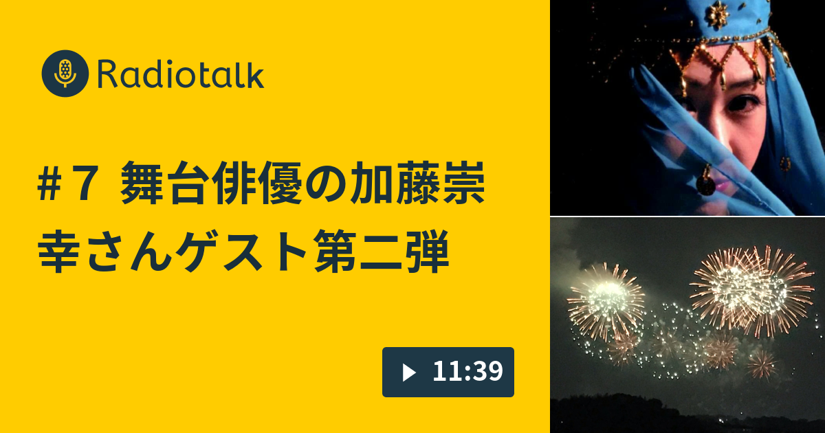 ラジオトーク「ガンバッチョ・ラン」のゆるまーれhttps://radiotalk.jp/talk/323919?fbclid=IwAR1VMJ7y5t8m5WIFlw5gfT83kaYHuFqaojXn5vDK1Ex7o-4KeQiBsusaXnk #6ゲスト舞台俳優の加藤崇幸さん人に言うにはハードル高い話俳優の加藤崇幸さんと人に言うにはハードル高い話について話しました。 【トピックス】 ・プロフィール ・人に言うにはハードル高い話 #ゲストと一緒に配信 #コモンカフェ #劇団天八radiotalk.jp https://radiotalk.jp/talk/323941?fbclid=IwAR0rwTWBEV0yJIFXO49s6NEBzjIRn_92f9KIJQXluJ4Fg0nCmO3K-0UASac #7 舞台俳優の加藤崇幸さんゲスト第二弾かとうたかゆきさんとお芝居について話しました。 #ゲストと一緒に配信 #劇団天八 #コモンカフェradiotalk.jp 劇団天八の役者「加藤崇幸」さん
