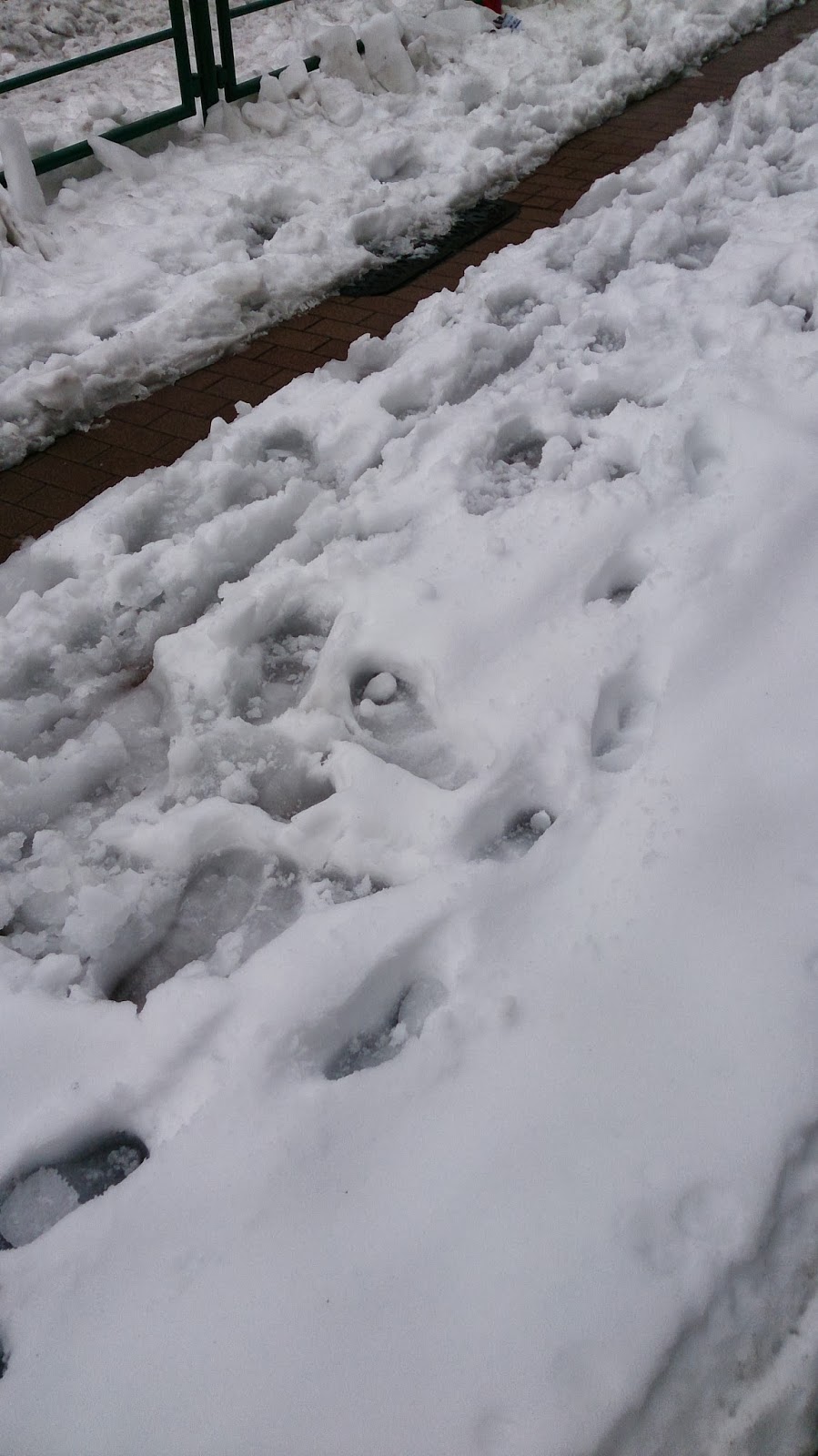 朝方からの雨で、先週の2倍ほどに積もった雪は滑りやすかった。