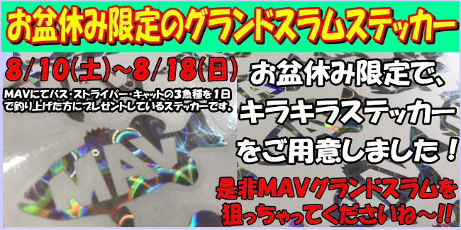 お盆休みは連日大放流!![]() ![]() ![]() ≫≫≫MAVグランドスラム詳細はこちら≪≪≪ |