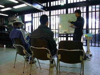 今日は第二回目の洗車教室です。お気軽に来てくれて嬉しいです。最初の30分ほどは中で塗装面について講習^^