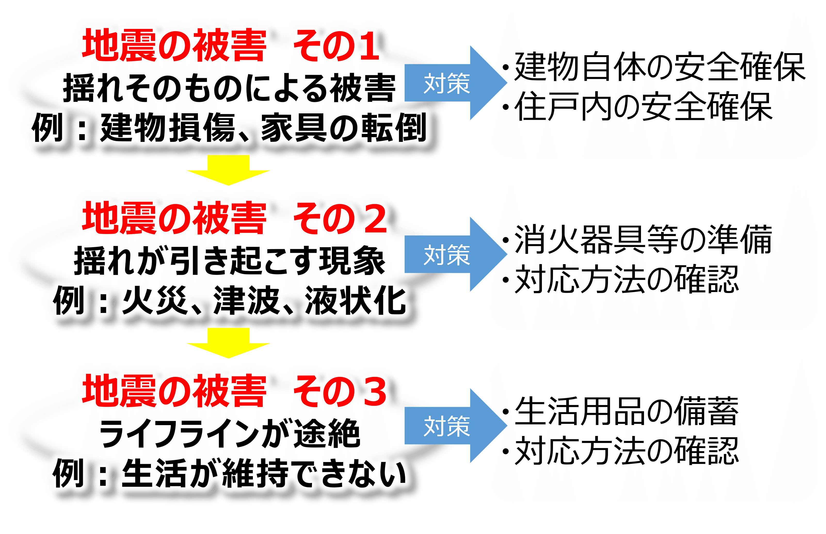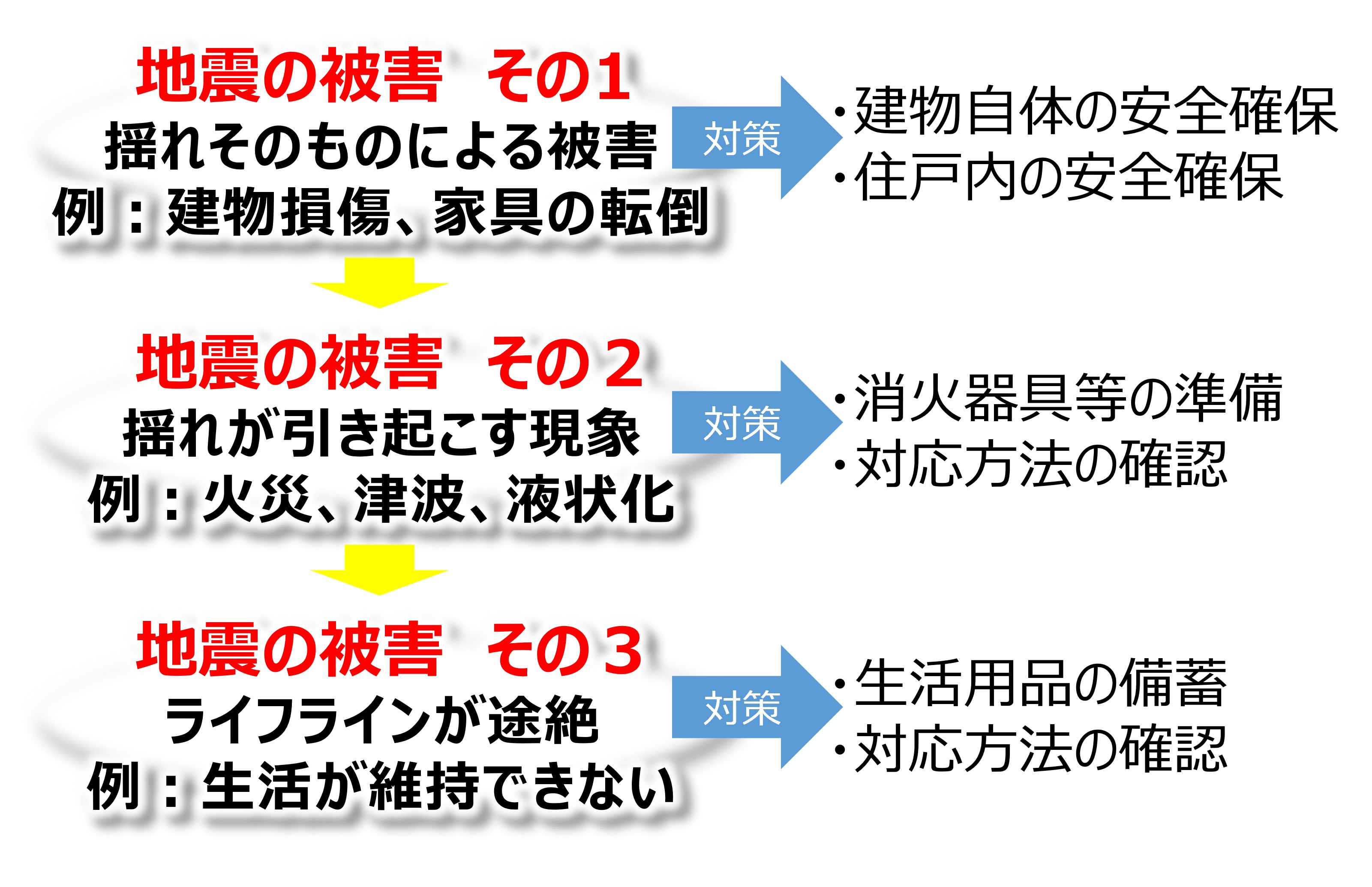 飲料水や食料などの対策はもちろん重要ですが、それだけでは不十分です。何より生活空間の安全を保てないと、せっかく備蓄したものが役立つ前に命を落としてしまうからです。