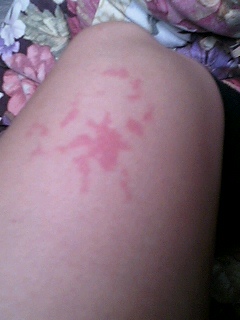 左足に違和感。めくってみたらこんな模様ができてる。どーも低温やけどらしい。ストーブ前で転がって寝るのは止めましょう(苦笑)