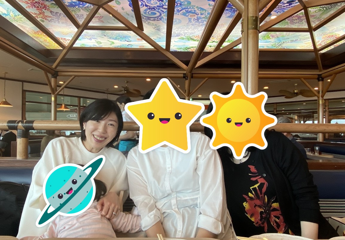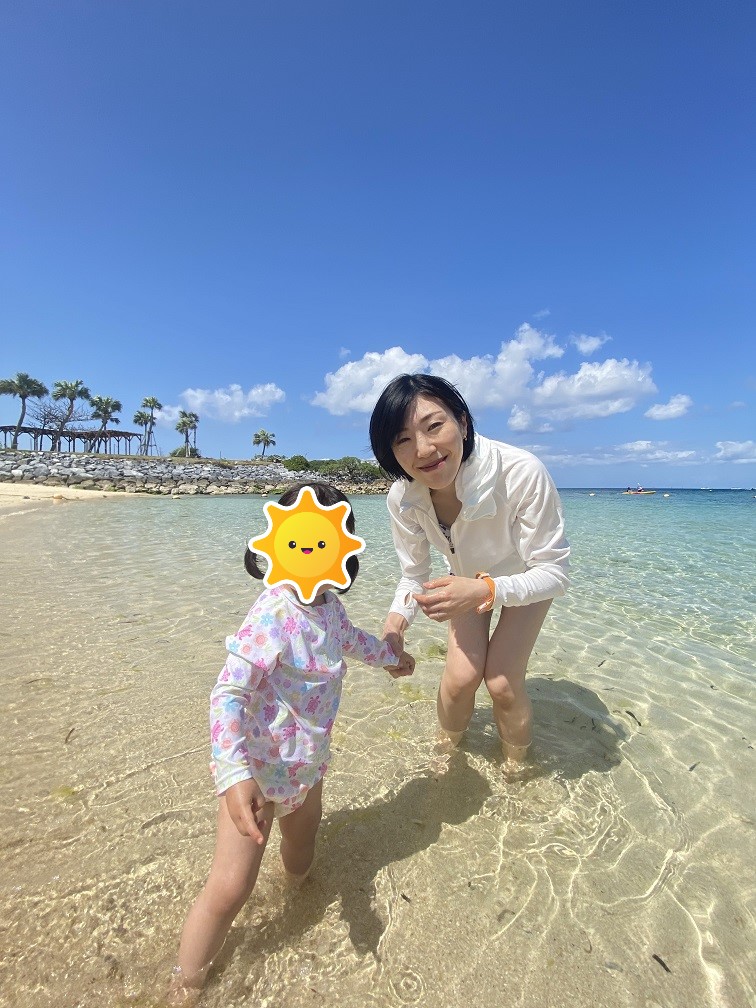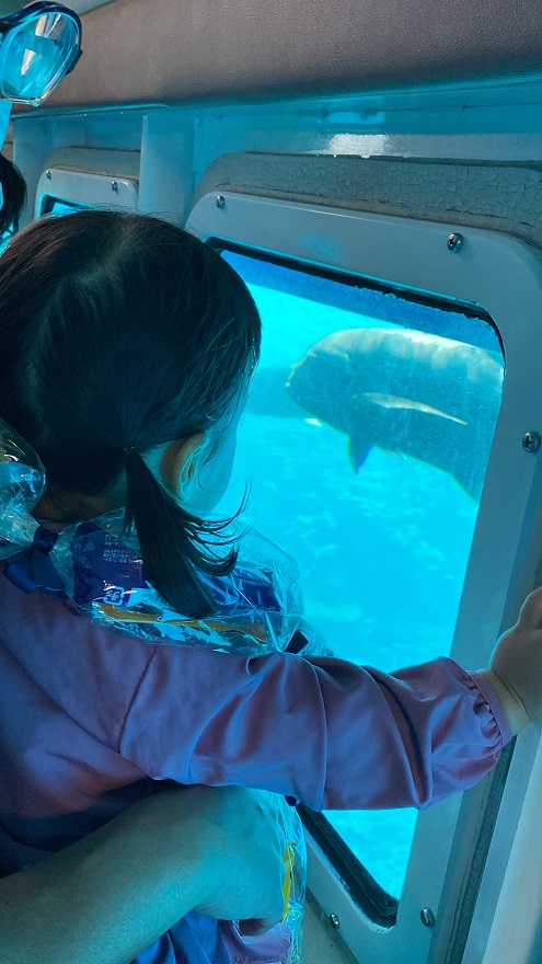 スタッフさんがお菓子で作ったレイを首にかけてくれました。
