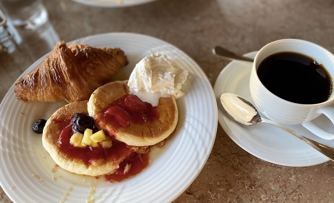 朝食で食べた、分厚いフワフワのパンケーキ!( *´艸`)