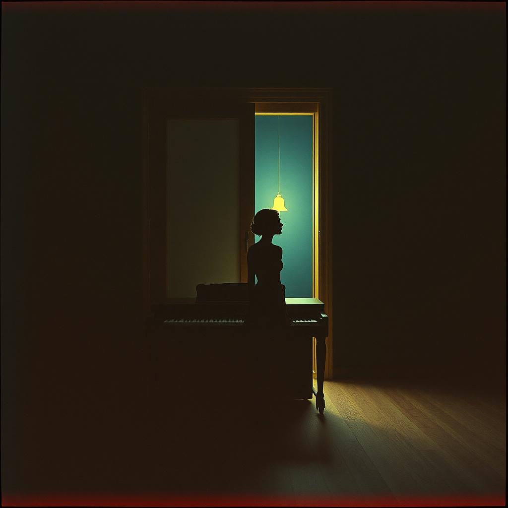 [Avant-garde Dark Jazz, Theatrical Metal, Retro Japanese Aesthetic, Distorted Grand Piano, Deep Cello, Glitchy percussions, Heavy Brass stabs, Expressive Woman Voice with Kobushi and Maki-jita, Transitioning from intimate whispers to manic operatic screams, 74 BPM, Noir atmosphere]