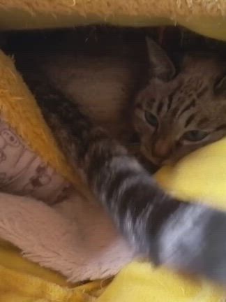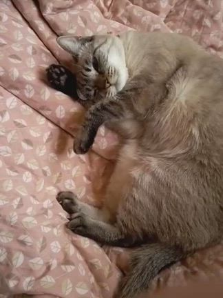 枯れ葉と共に散りそうな私ですがシャム子がプチ欲しさに私の顔をペロリにきます。こんな私でもまだ需要
