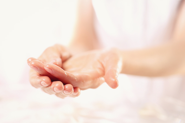オイルを手に出し温めて、ゆっくりとおさえるように