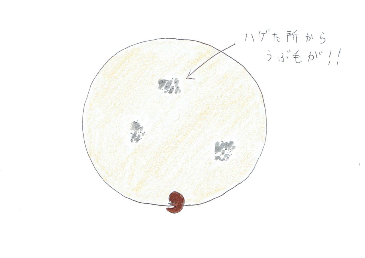 ハゲた部分は、最初は光りそうなくらいツルツル。